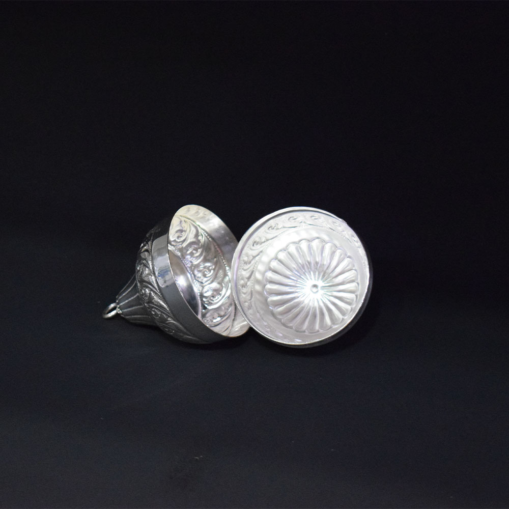 A finely crafted 999 pure silver Kalash Coconut (Shreefal), symbolizing prosperity and purity. Ideal for temple rituals, poojas, and home mandirs, this sacred piece enhances spiritual decor and divine offerings.